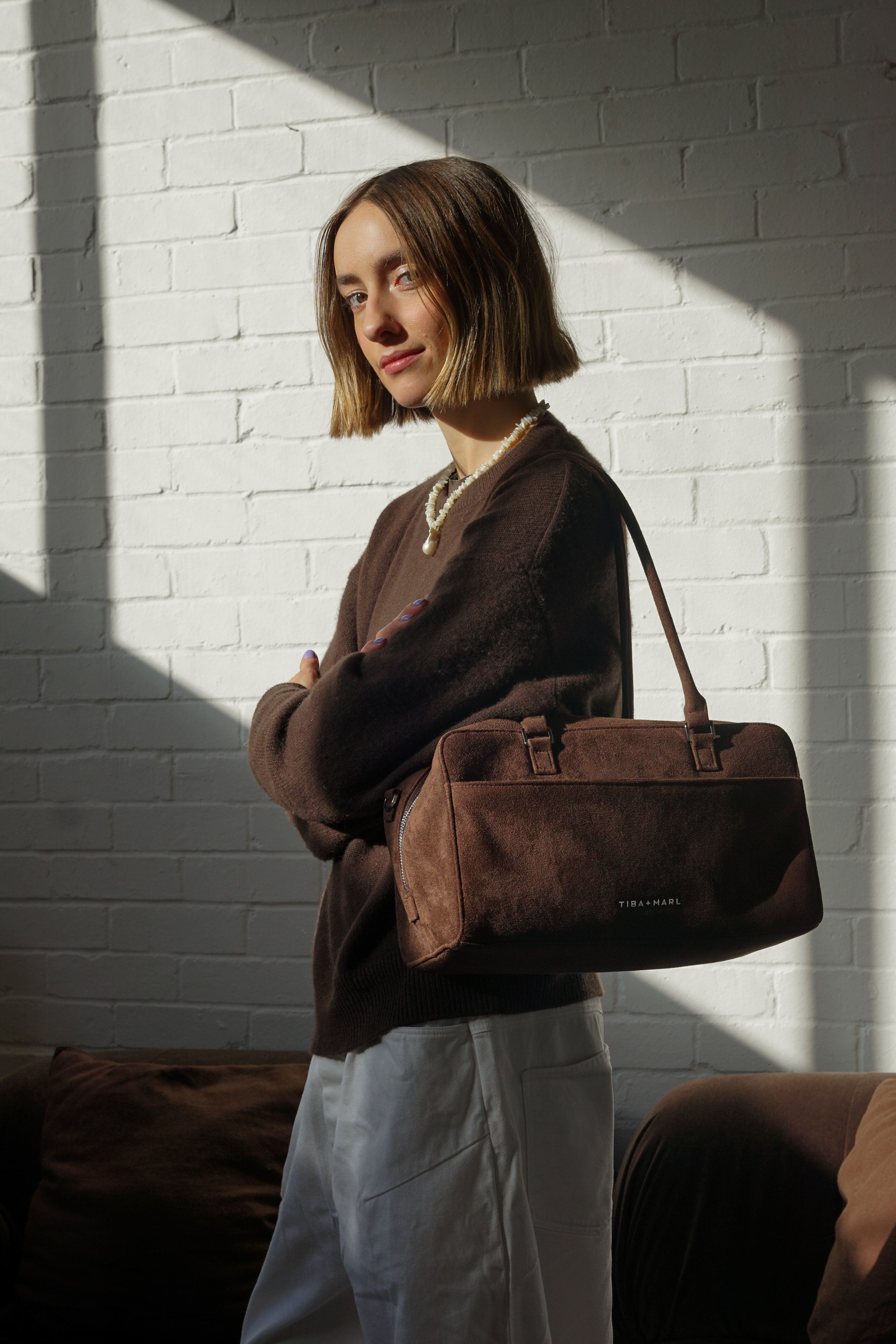 Riley Compact East-West Changing Bag Brown Faux Suede