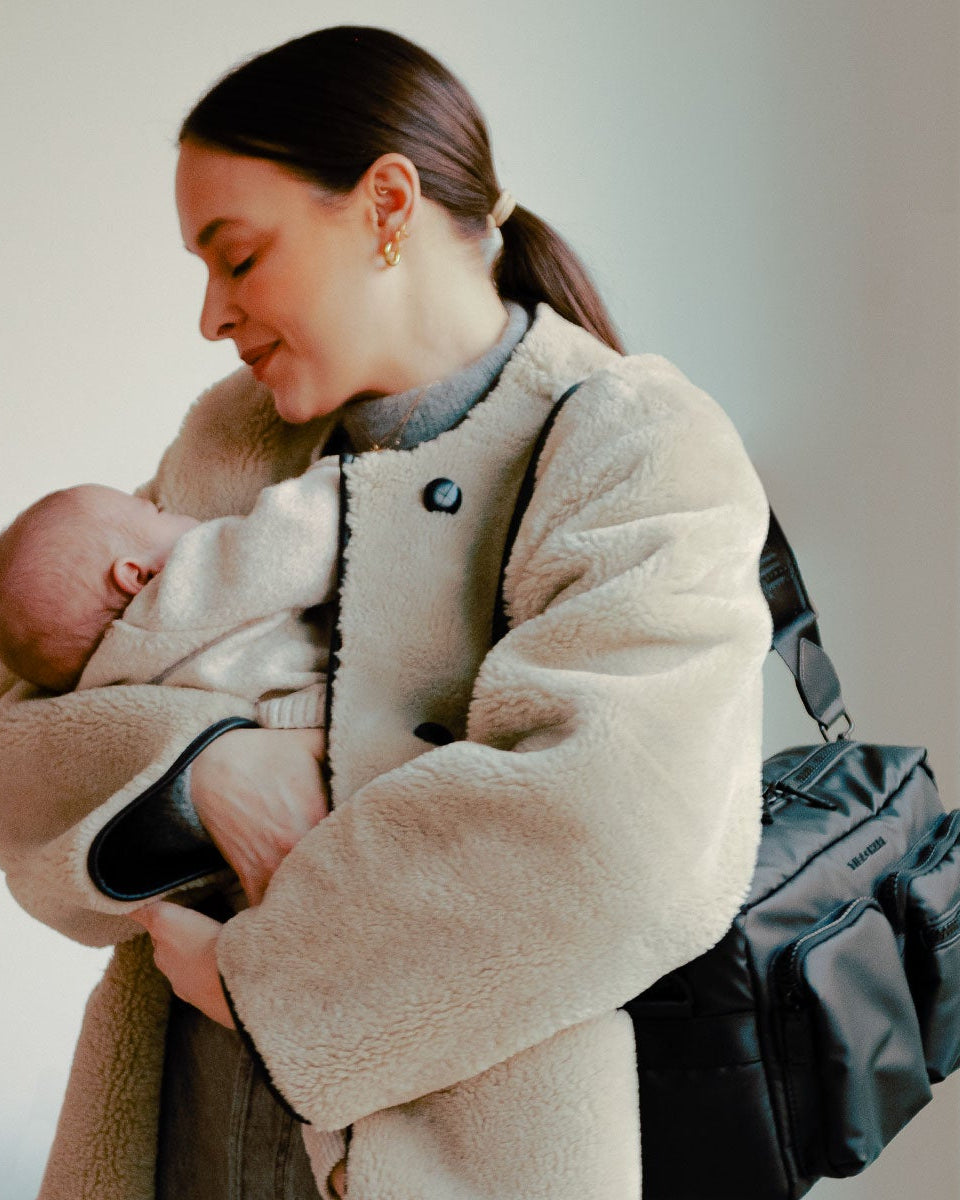 Spacious enough for your baby essentials and perfect for when you want to travel lighter + smarter. Axel has been constructed from weather proof, rubberised PU and set back to sleek black hardware, and 100% recycled lining.