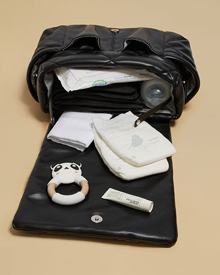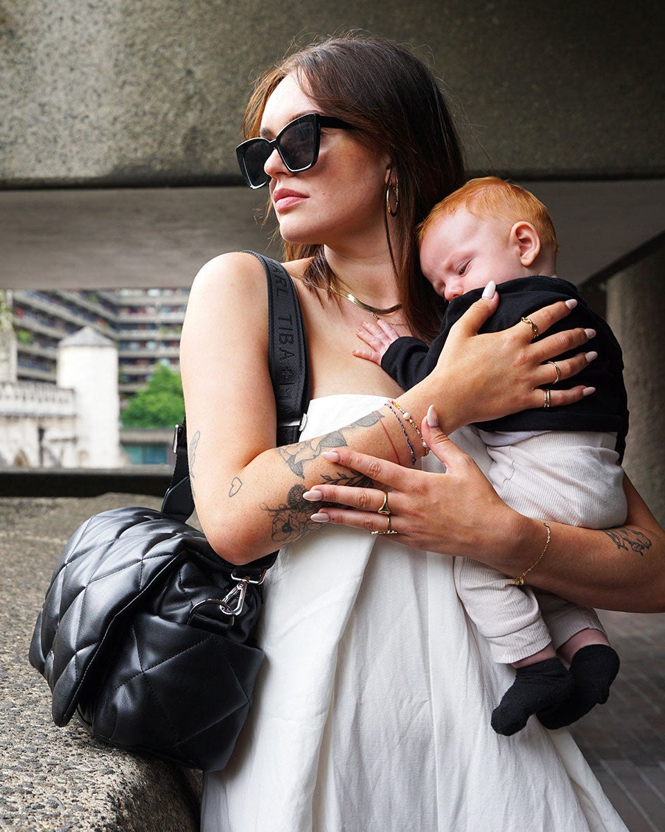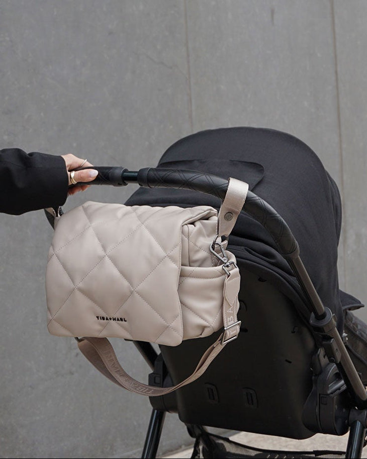 A sleek, 90’s-inspired changing bag designed to be both stylish and highly practical. With a minimal quilted exterior and smartly organised interior, Nova keeps all your parenting essentials in easy reach — whether worn over the shoulder or converted into a stroller-mounted organiser.