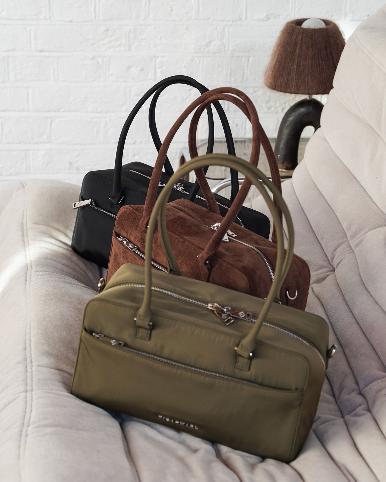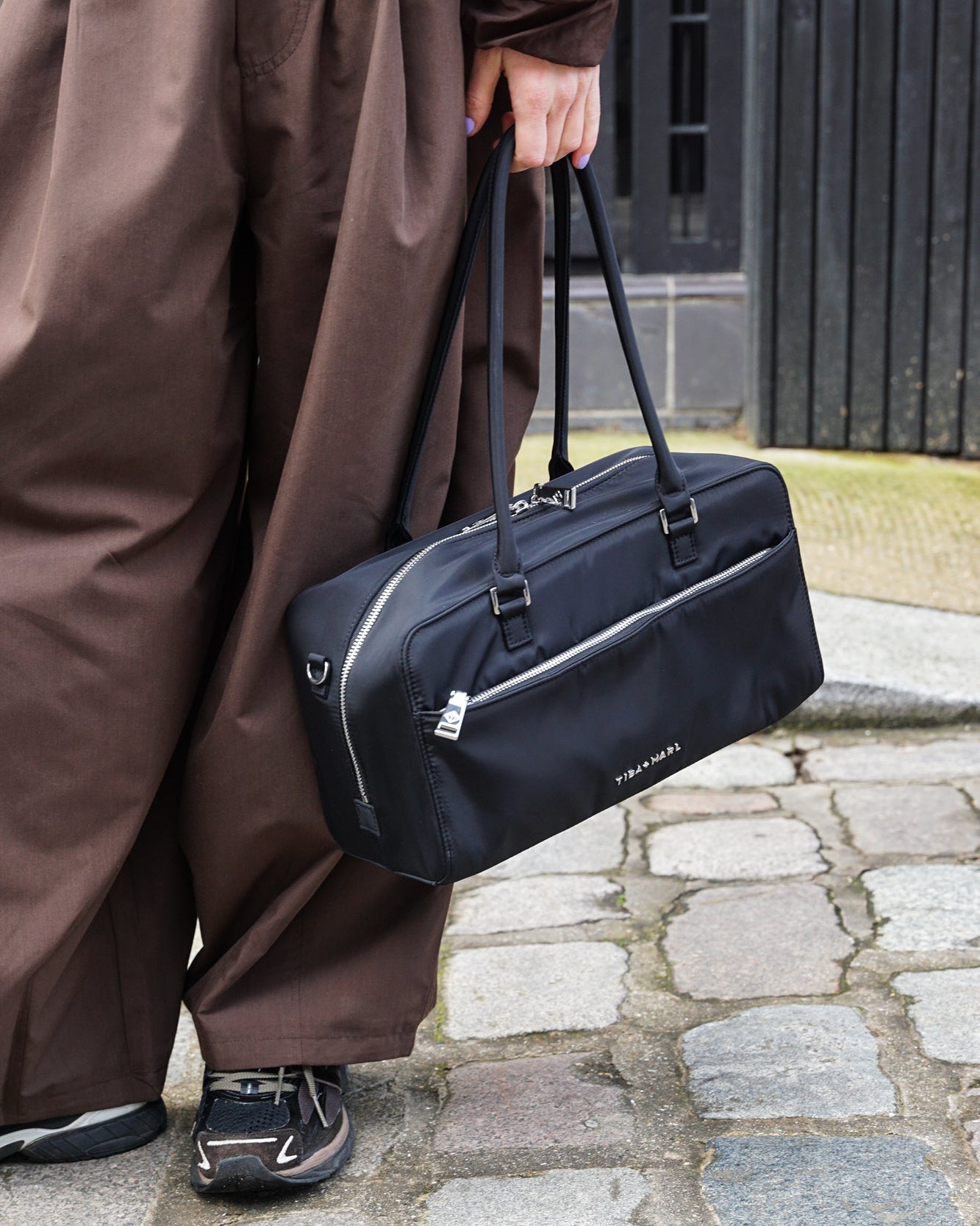 Every detail of RILEY is considered — from its clean exterior lines to its consciously chosen materials. Recycled fabrics and durable finishes ensure it stands up to daily use, while premium silver hardware adds a directional, style-led edge. Practical, yes — but always polished.