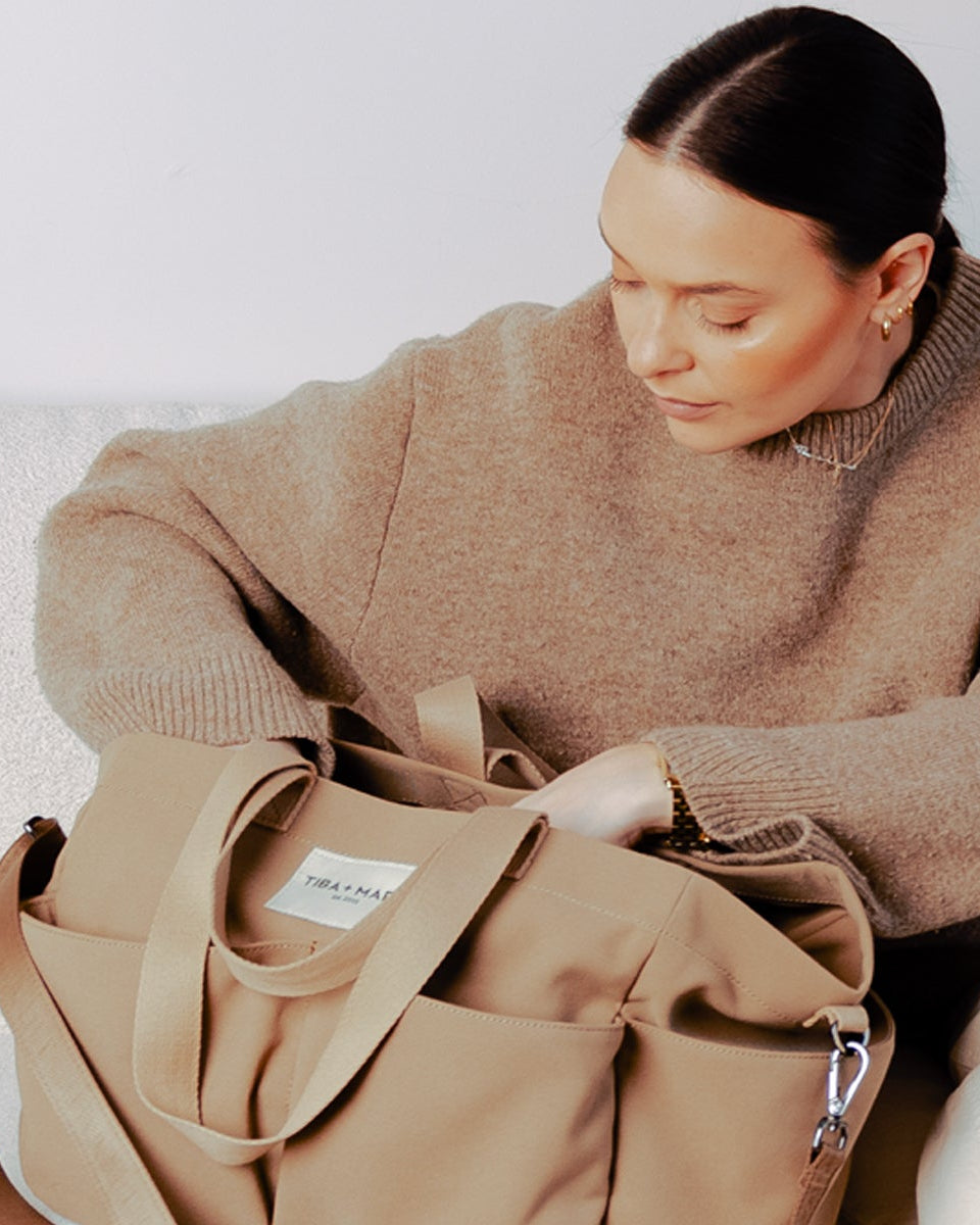 This sustainable tote offers 3 strap length options, including a main adjustable strap so you can wear it your way - crossbody, on the shoulder, or slung your stroller for easy access on the go.